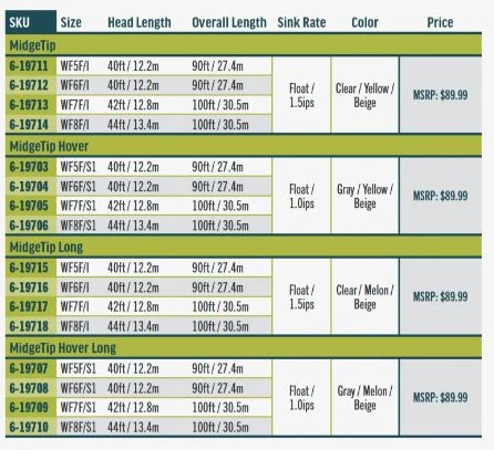 The Premier Midge tip is a floating line with either a 3ft or 6ft long, clear intermediate tip that sinks 1.5 inches per second or a gray hover option that sinks 1 inch per second. This is deadly effective on windy days, when fishing in shallow bays, close to lake shores or over the top of weed beds, and is perfect for fishing nymphs, emergers, and chironomids (buzzers). Each line is built with a supple coldwater core, SlickCast coating, and welded loops on the front and back for fast rigging. With options available in regular and long, hover and intermediate, it is a must have line for lake anglers everywhere.