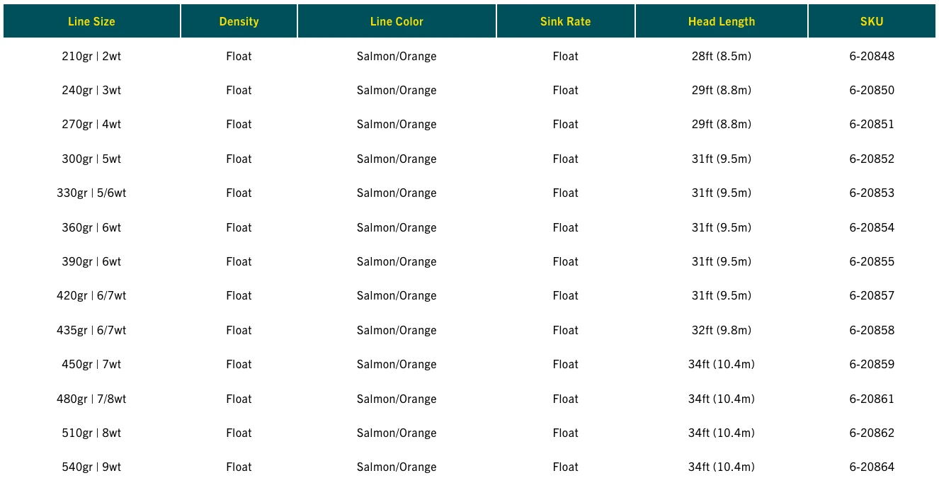 THE RIO SCANDI head is a very easy casting Scandi style shooting head, built on RIO’s ultra-low stretch ConnectCore for the utmost in casting control and sensitivity. It is available in a multitude of lengths and weights to cover all rod and angling situations. For tight casting spots and the utmost in ease of casting use a head length that is between 2.5 and 3 times the length of the rod, thus a 12 ft rod would work best with a head that is between 30 and 36 ft in length. The shorter the head length, the tighter the back casting space an angler can fish in. With more room and better casting skills a longer head provides the angler with less line to strip in between each cast and more fishing time.