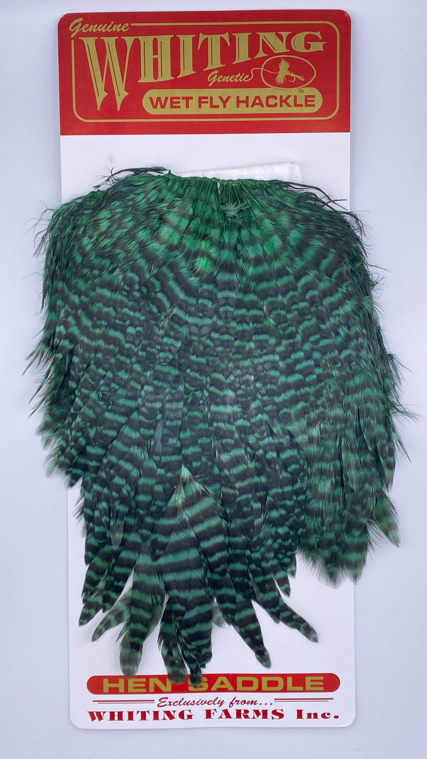 Whiting Red Label Hen Saddle. This is a great soft hackle material. The length of the overall feathers is relatively long because they are the hens from the red label line. Also good on streamers.